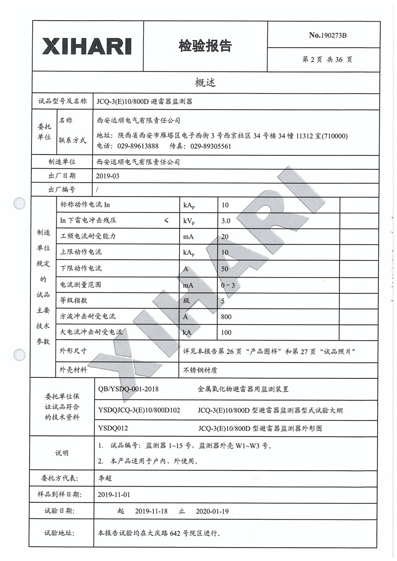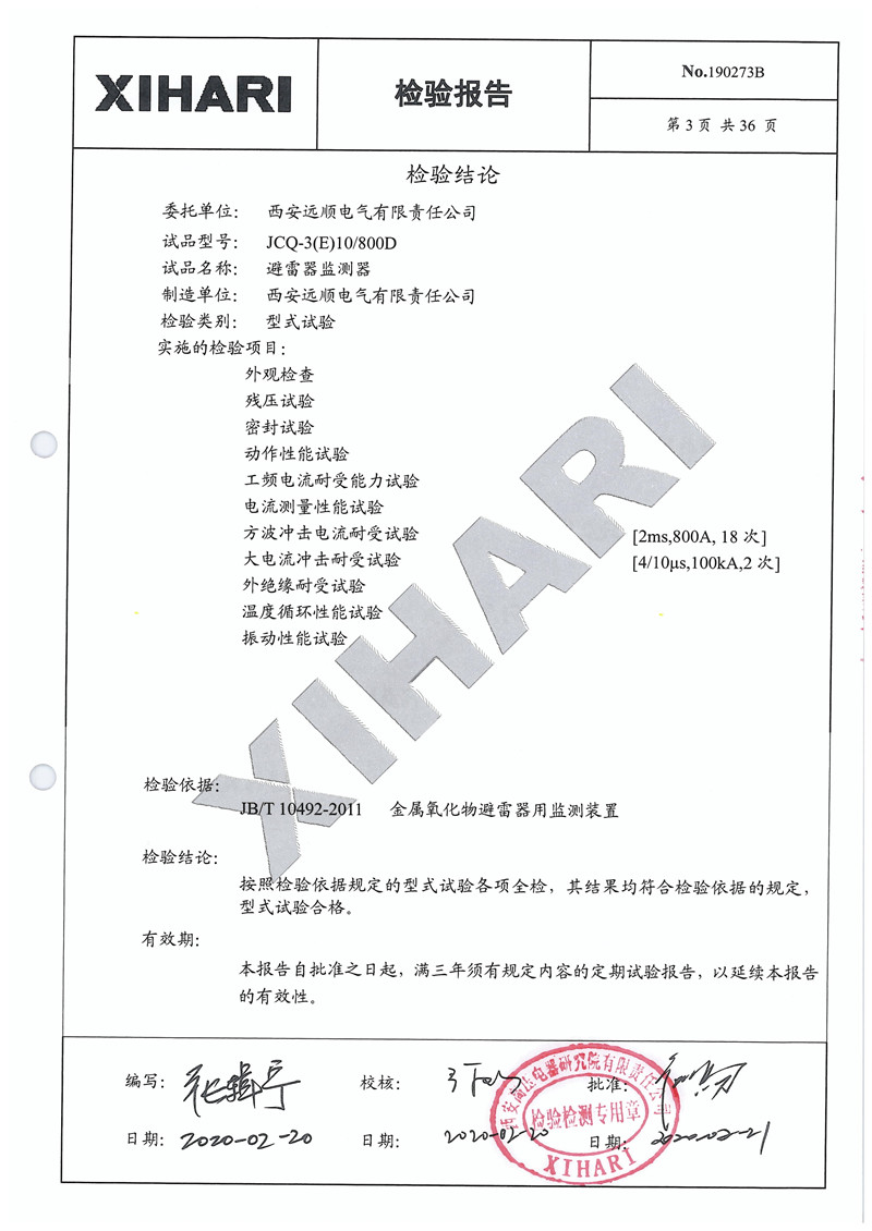 西安远顺 JCQ-3(E)10 800D避雷器监测器检验报告