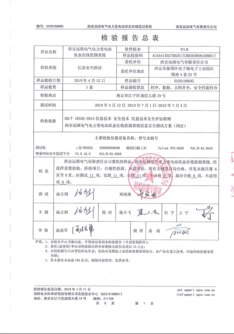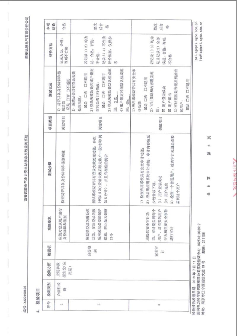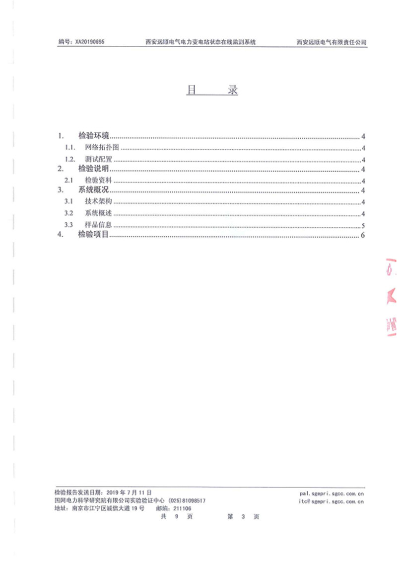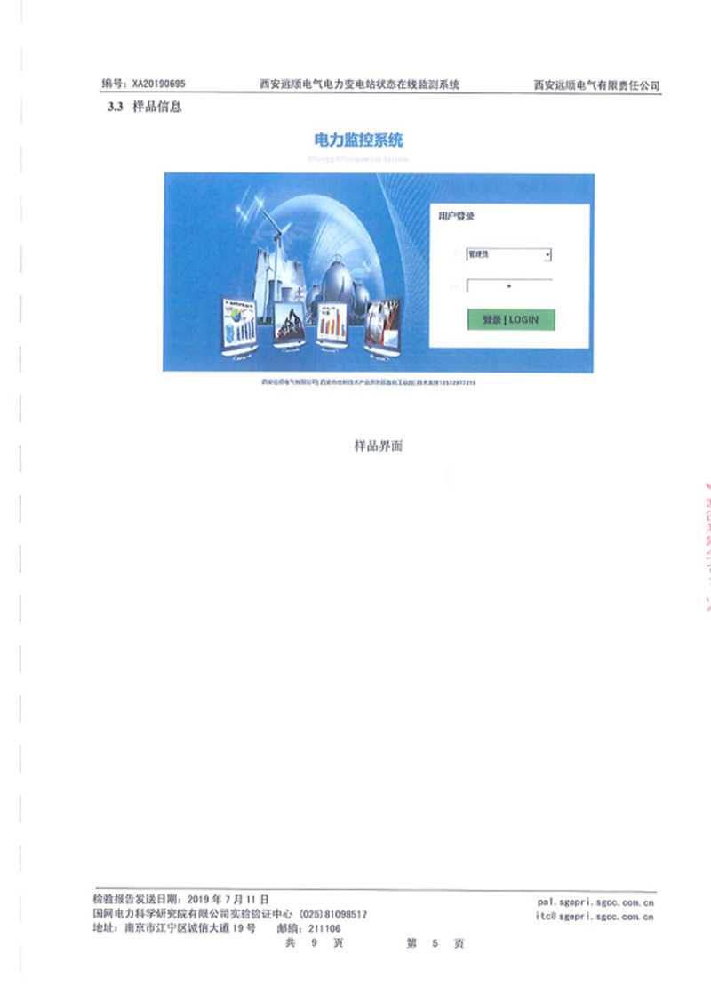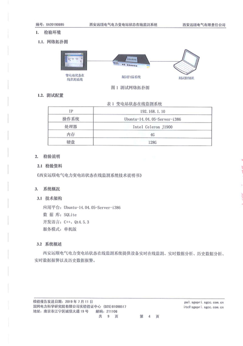 电力变电站状态在线监测系统 检验报告 XA20190695