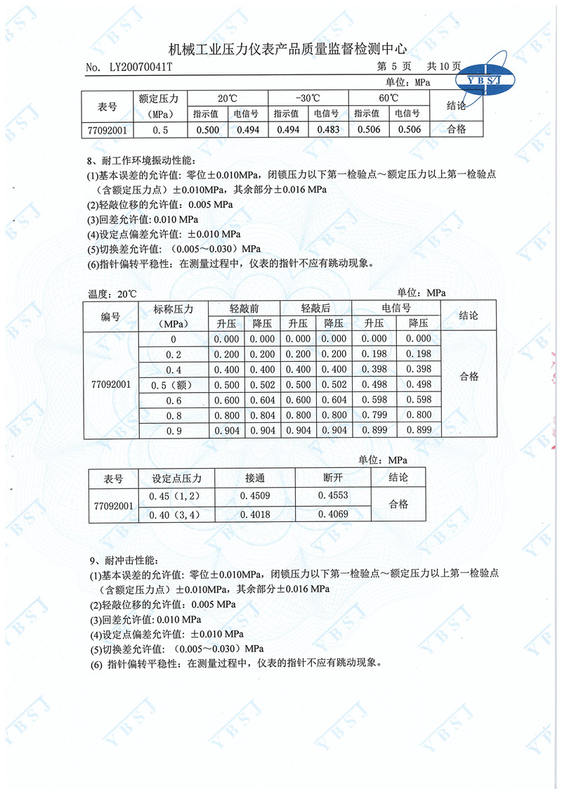 远传SF6密度继电器 型式试验报告1.0级 LB19040087T